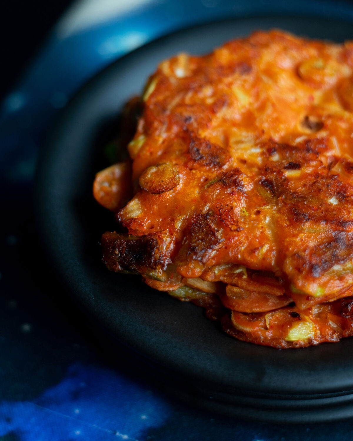 Dit recept voor vegan kimchi pannenkoeken komt uit Lucky Peach presents 101 Easy Asian Recipes en is supermakkelijk, snel en kan zowel met zelfgemaakte als kant-en-klaar kimchi worden gemaakt.