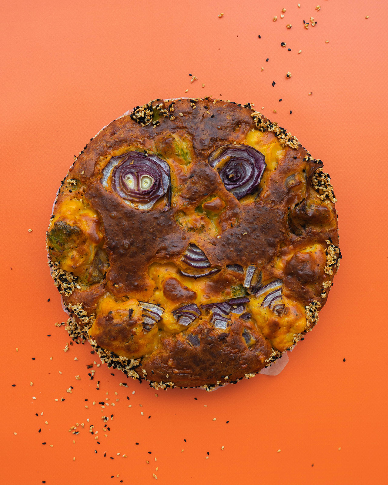 - Meng 45 g - 3 el sesamzaad met 15 g - 3 tl nigellazaad in een kleine kom. Bedek de bodem van je springvorm met bakpapier en bestrijk de zijkanten met boter (olie zou ook moeten werken). Strooi het sesam-nigellazaadmengsel langs de rand van de springvorm zodat de zijkanten bedekt zijn.