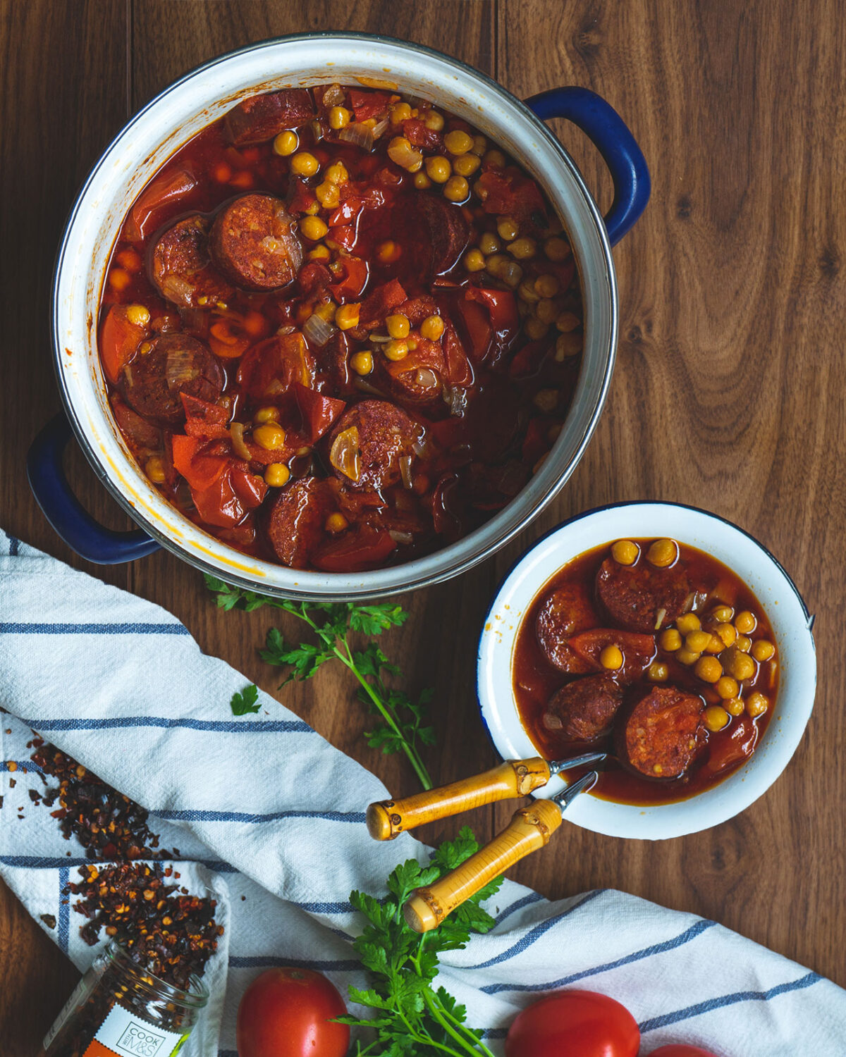 Het perfecte stoofpotje voor de winter. Aards, met de lichte hitte van chorizo en flink wat diepte door de sherry.