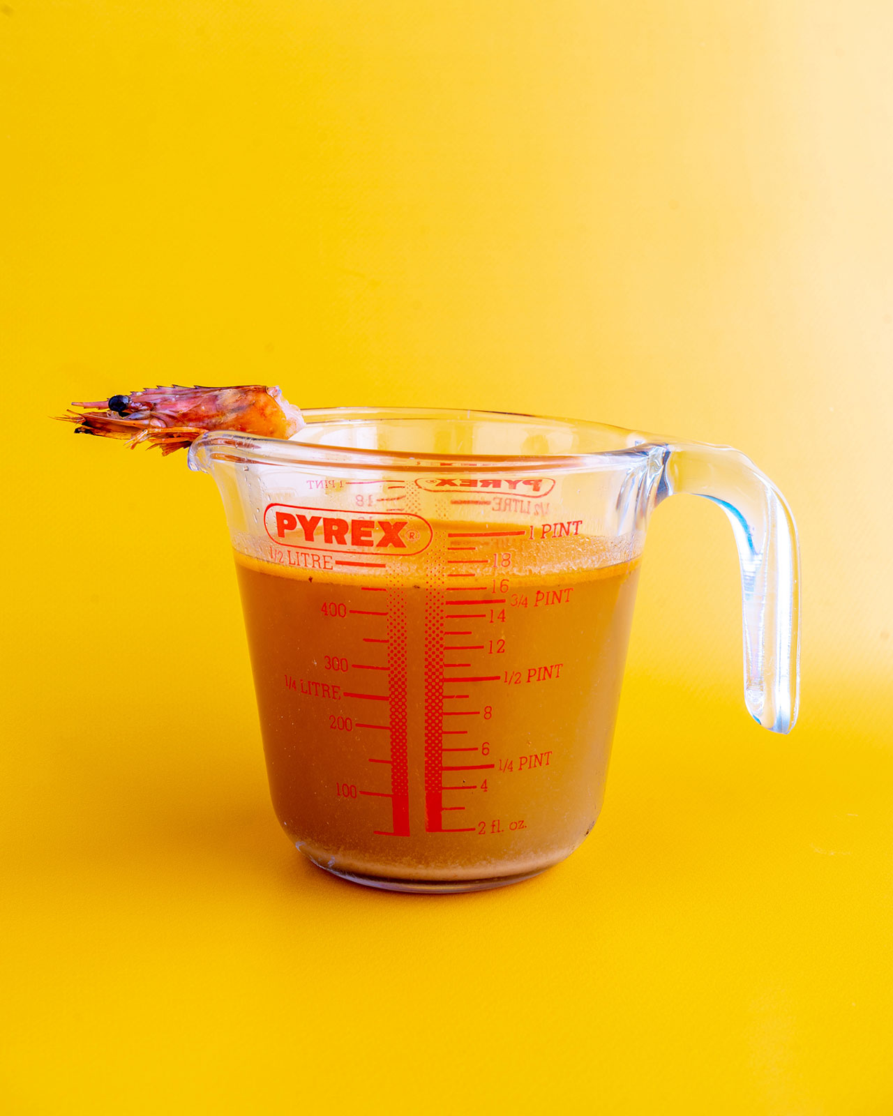 - Voeg nu de kapot geslagen garnalenresten toe en roer tot je, zoals Fergus het noemt, "Verrukkelijke schaaldier dingen ruikt."