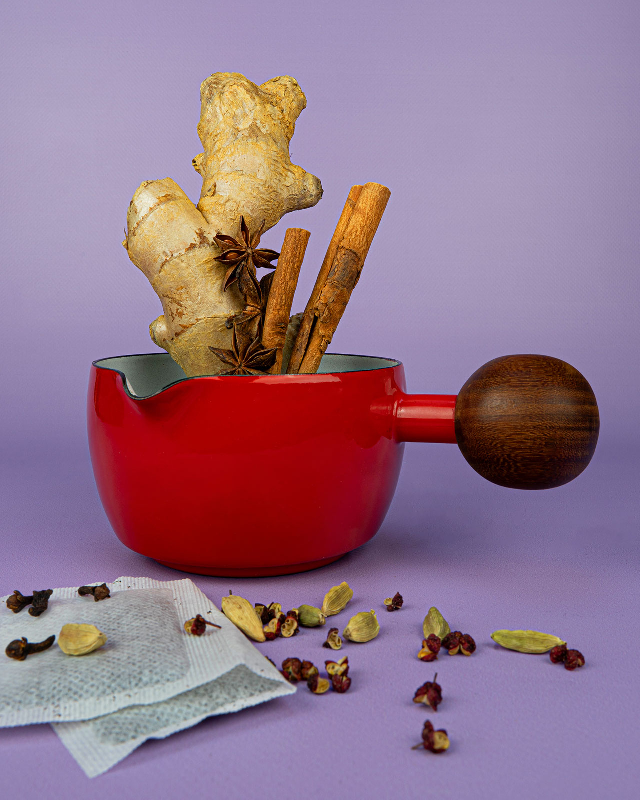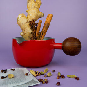 Ik raad je wel aan om hiervoor hele specerijen te gebruiken, tenzij je een kaasdoek hebt om de thee doorheen te zeven, anders krijg je allemaal poeder in je thee. Mocht je hiervoor kiezen, zoek dan zelf even de juiste hoeveelheden op, want 1 theelepel hele zwarte peperkorrels vertaalt zich over het algemeen niet perfect naar 1 theelepel gemalen zwarte peperkorrels.